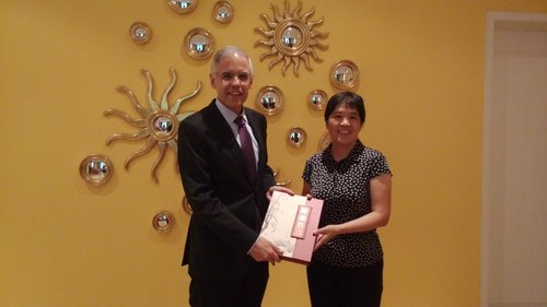 日前,刘伟副书记赴墨西哥驻华大使馆,与Julián Ventura大使就我校与墨西哥在高层官员来华项目及汉语国际教育方面的合作进行了会谈。大使表示将在2015年下半年组织墨西哥高层青年官员来华进行中国学研究,这也是我校继欧盟高访研修团之后,与墨西哥方面促成的首个高访来华项目。参加本次会谈的还有墨西哥政治参赞,文化参赞,我校的杰出校友、墨西哥总统翻译、著名的汉学家莉亚娜及我校孔子学院事业部相关人员。